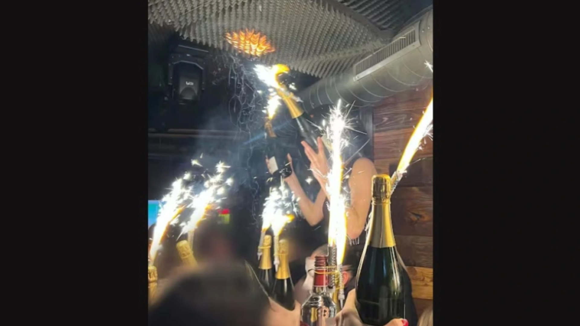 Η στιγμή ακριβώς που παίρνει φωτιά η οροφή του μπαρ στο Κραν Μοντανά - Πηγή: στιγμιότυπο από ερασιτεχνικό βίντεο